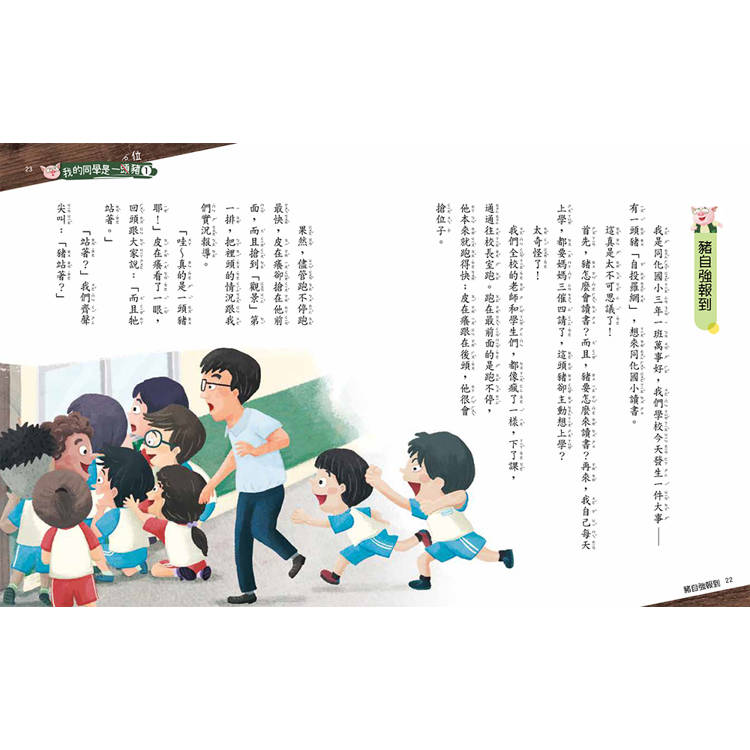 「校長,張爺爺給我一間書房,我在裡頭睡覺和讀書。我上廁所不是去化糞池,也是去廁所找馬桶的,所以,您把我當成一般的小朋友就可以了。」豬自強一說完,校長激動到都快哭了:「可是你來讀書,別人會說我是『豬學校』的校長……」