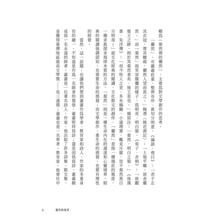 本書以儼然與粲然為書名,正如蕭蕭多重身分融合為一的寫照。