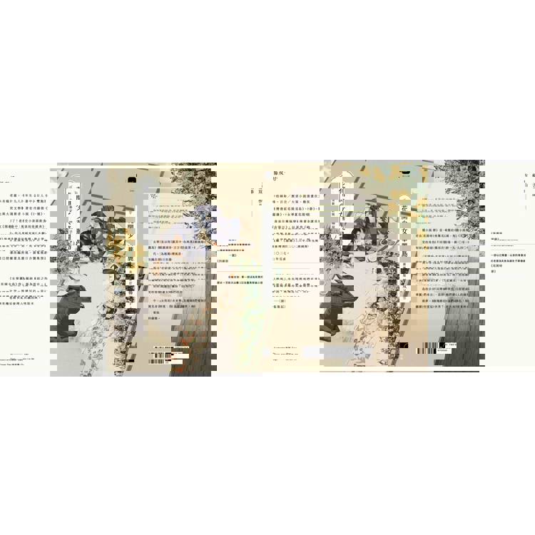 ★ 封面插畫發想自〈金木犀銀木犀〉,畫中畫以日治時期膠彩畫家林之助的〈朝涼〉為原型;各輯插畫分別以孤挺花、山茶花、牡丹花,呼應《花開時節》的角色代表花及篇章(插畫/高妍;封面設計/吳佳璘)。
