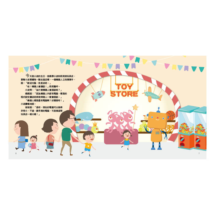 今天是小波的生日,一家人開心地來到玩具店幫他挑選禮物,沒想到這正是一場奇遇的開始!他們不只踫見了會說話的機器人派奇,還認了一位令人意想不到的新朋友!讓我們一起探索箇中奧秘,體驗AI的神奇吧!
