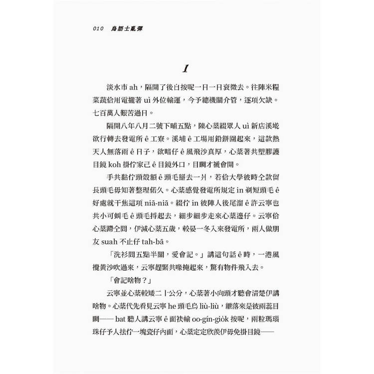 「洗衫間五點半關,愛會記。」講這句話ê時,一港風攪黃沙吹過來,云寧趕緊共喙掩起來,驚有物件飛入去。