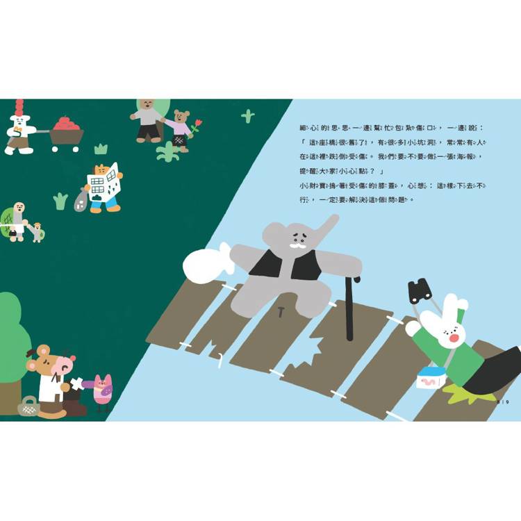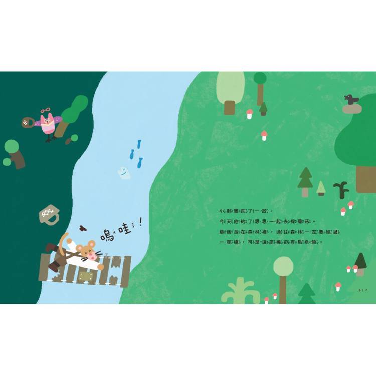 森林裡的橋壞了,小財寶號召大家一起修好它。