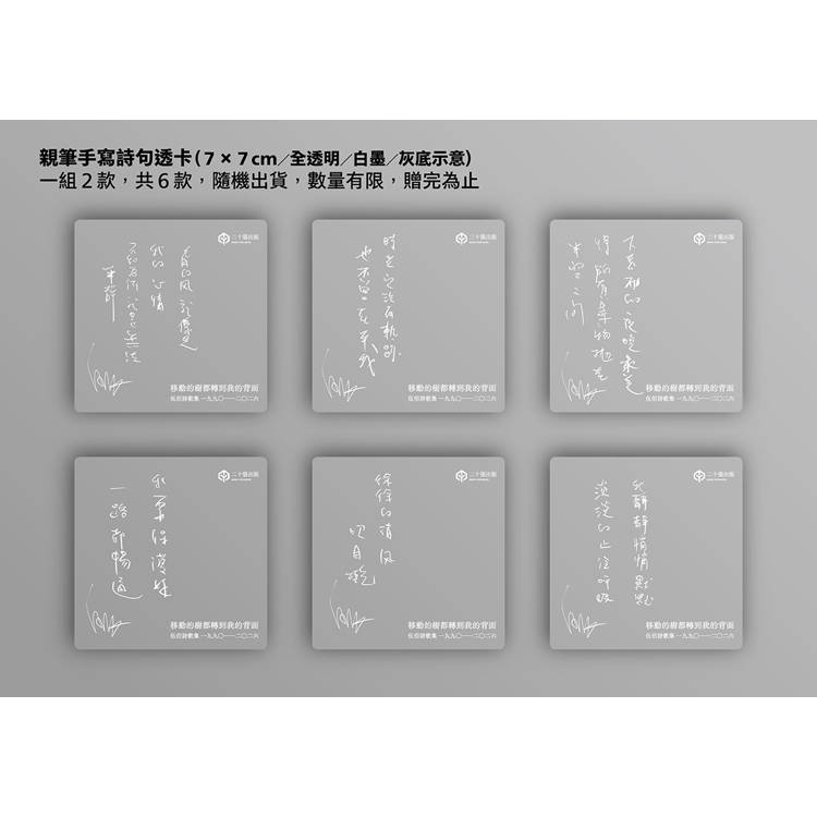 ★詩人伍佰親筆手寫詩句透卡(7×7cm,全透明,白墨/1組2款,1全6款,隨機贈送,數量有限,送完為止)