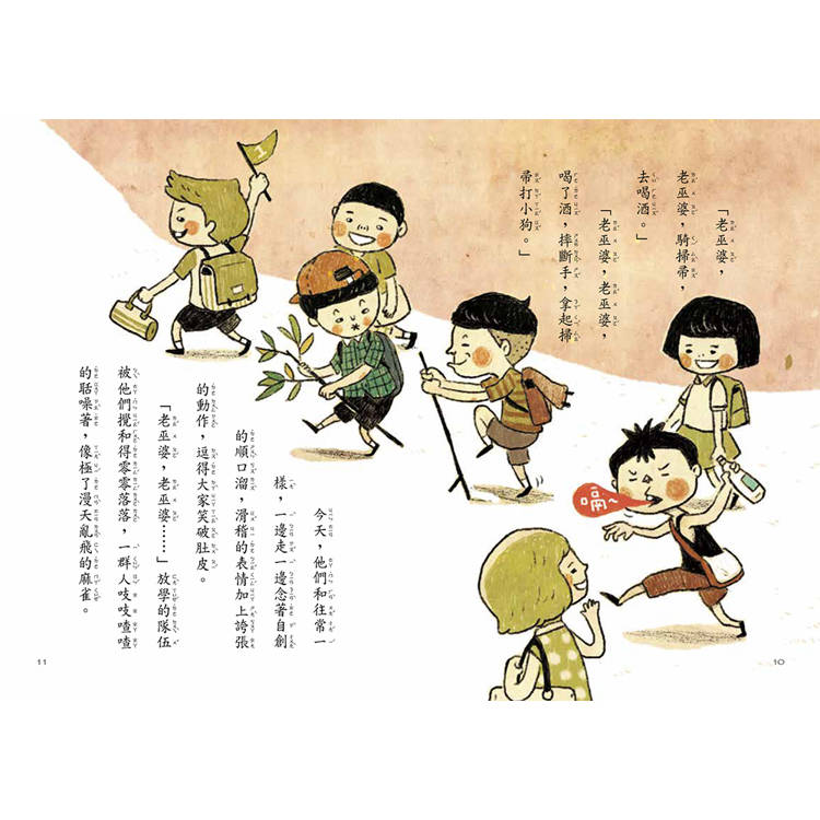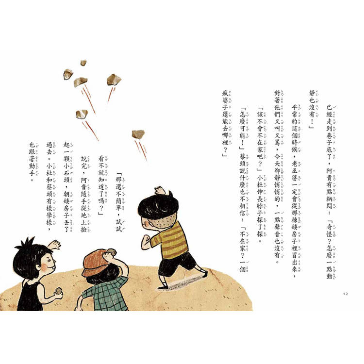巷尾的矮屋裡,住著一個讓人害怕的「老巫婆」。她瘦得像骷髏,眼神陰沉,讓許多孩子忍不住繞道而行。但對「搞怪三人組」來說,她卻是最有趣的目標——每天放學後,他們總是大聲吵鬧、刻意挑釁,只為了看她氣急敗壞的追出來。直到有一天,他們惡作劇過了頭,被老師處罰,必須每天去「陪伴她」。原本的恐懼與排斥,在一次次靠近中慢慢改變。他們開始說話、幫忙,甚至在「老巫婆」生病時,親手為她煮一碗熱騰騰的粥。這是一個關於誤解與理解的故事。當孩子願意靠近,他們不只看見了別人的故事,也學會了如何付出與關心。