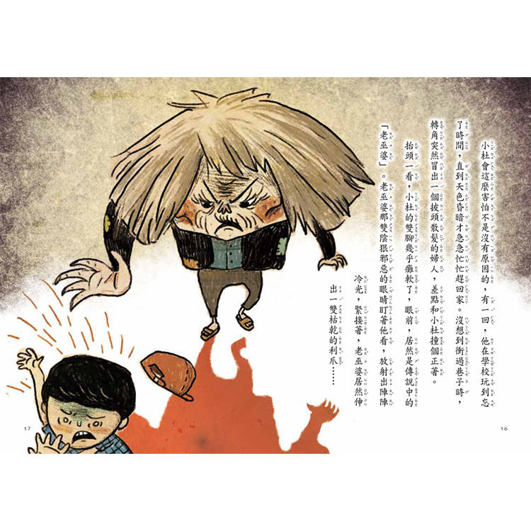 小杜會這麼害怕不是沒有原因的,有一回,他在學校玩到忘了時間,直到天色昏暗才急急忙忙趕回家。沒想到衝過巷子時,轉角突然冒出一個披頭散髮的婦人,差點和小杜撞個正著。