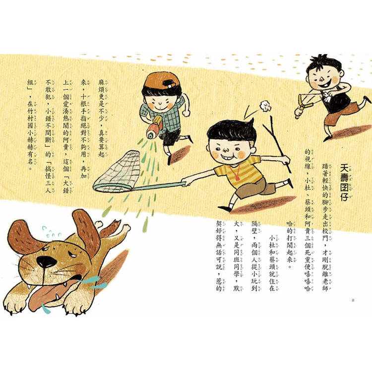 小杜和蔡頭就住在隔壁,兩個人從小玩到大,又是同班同學,默契好得無話可說,惹的麻煩更是不少,真要算起來,十根手指絕對不夠用,再加上一個愛湊熱鬧的阿貴,這個「大錯不敢犯,小錯不間斷」的「搞怪三人組」,在竹村國小赫赫有名。