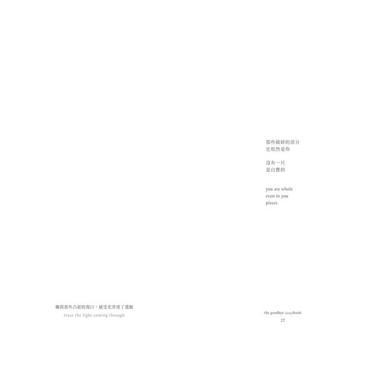 the goodbye (note)book 我們會一起練習縫合傷口,練習對那個傷痕累累的自己說聲:「辛苦了, 你做得很好。」