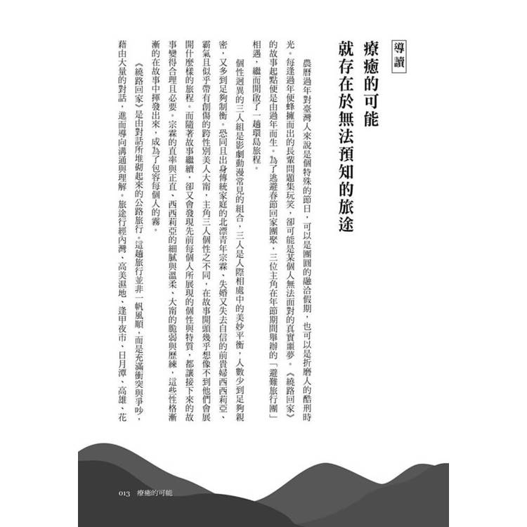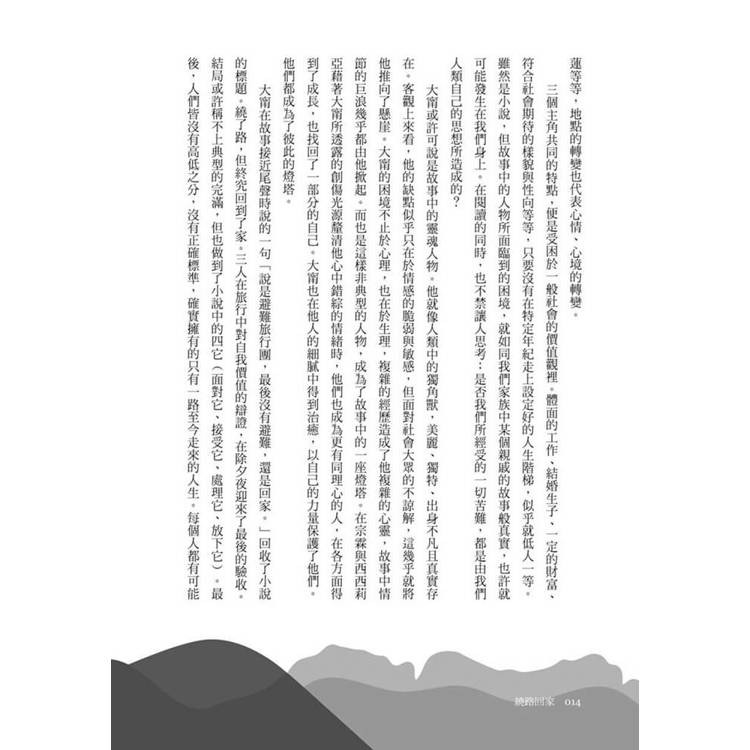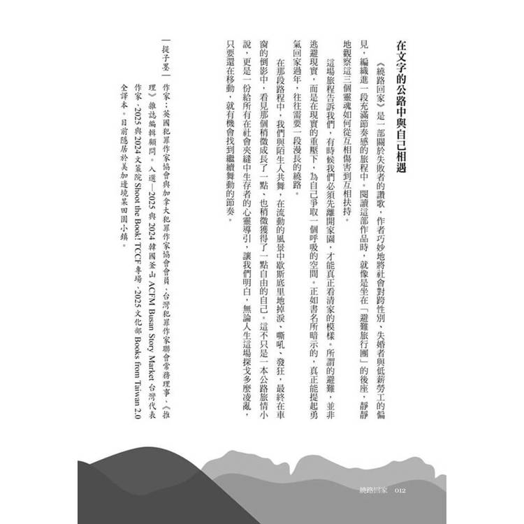 如果你也正處於人生的低谷,如果你也對日復一日的比較感到疲憊,如果你也曾想過逃離一切……請翻開這本《繞路回家》。讓這三位不完美的旅伴,帶你踏上一場痛快淋漓的大逃亡。你會在他們的眼淚中釋放自己的委屈,在他們的笑聲中找回遺失的勇氣。