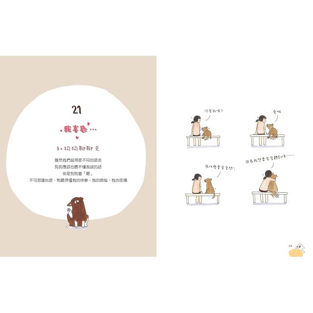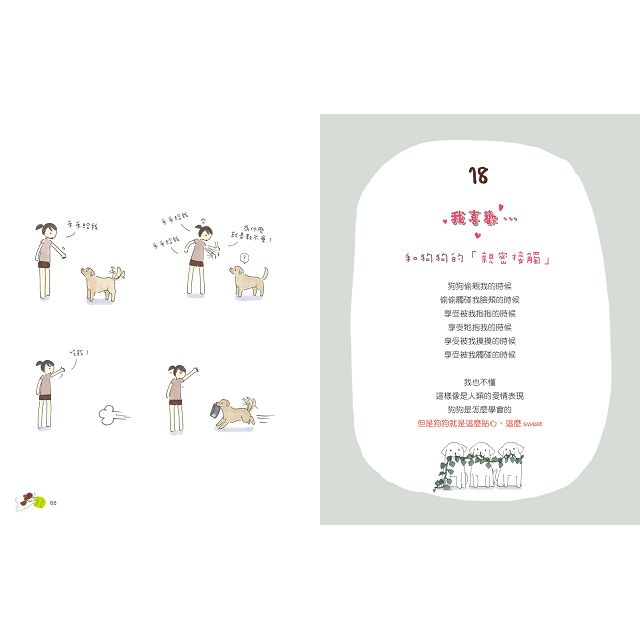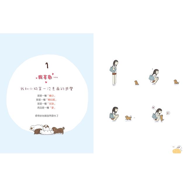 1.作者以清新簡單的畫風,表達出對狗狗的濃厚情感與關懷,以及與狗狗幸福生活。