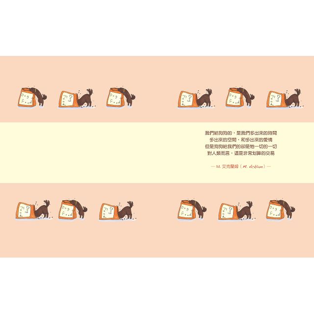 2.讓所愛狗人,更加珍惜與狗狗相處的每個片刻!你會發現,平凡生活的每一刻,都是狗狗給你的愛。身邊所擁有的最珍貴陪伴──就是,你最親愛的狗狗。