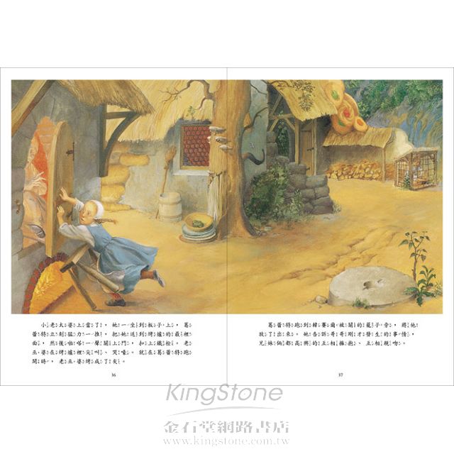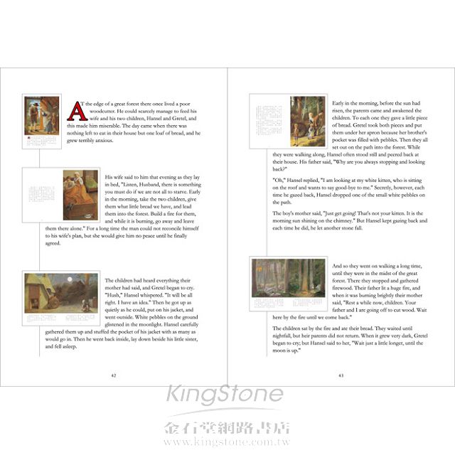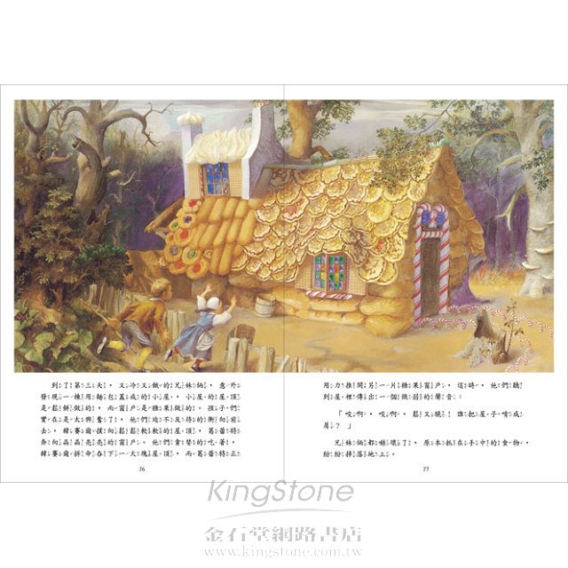 我們也可以從插畫中看到柴林斯基豐富的想像力,例如P26~27與P27~28裡的糖果屋,是由一片片麵包、餅乾所堆砌而成的,不只是畫出了童趣,也呈現出質地的美感。整體來說,書中一幅幅的插畫,盡責的烘托出故事的神秘性與童趣性,的確是圖畫書的成功典範。