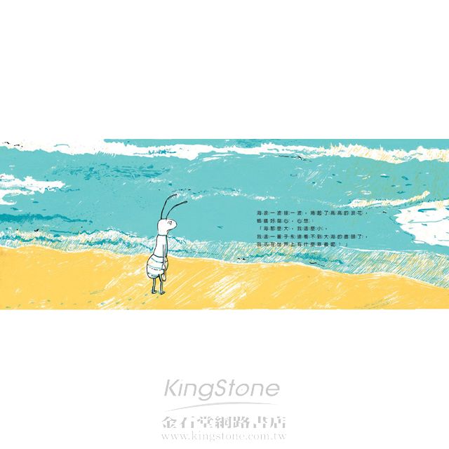 「海這麼大,我這麼小……我這一輩子,永遠也看不到大海的盡頭了。我活在世界上有什麼意義呢?」小螞蟻傷心極了。