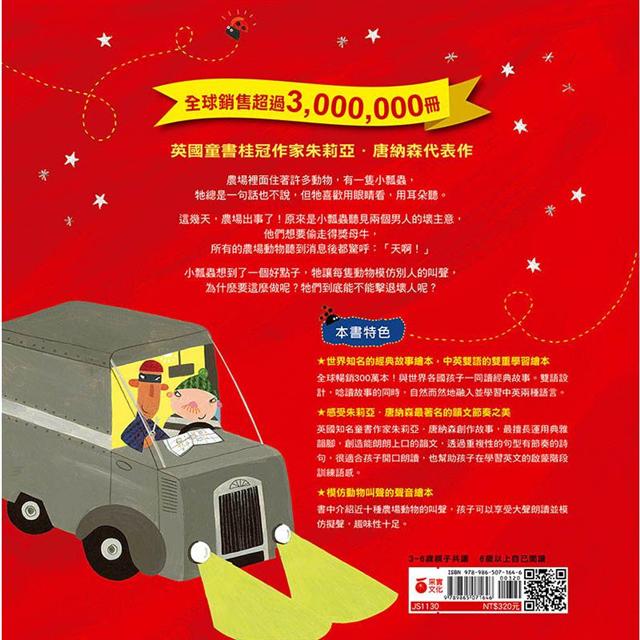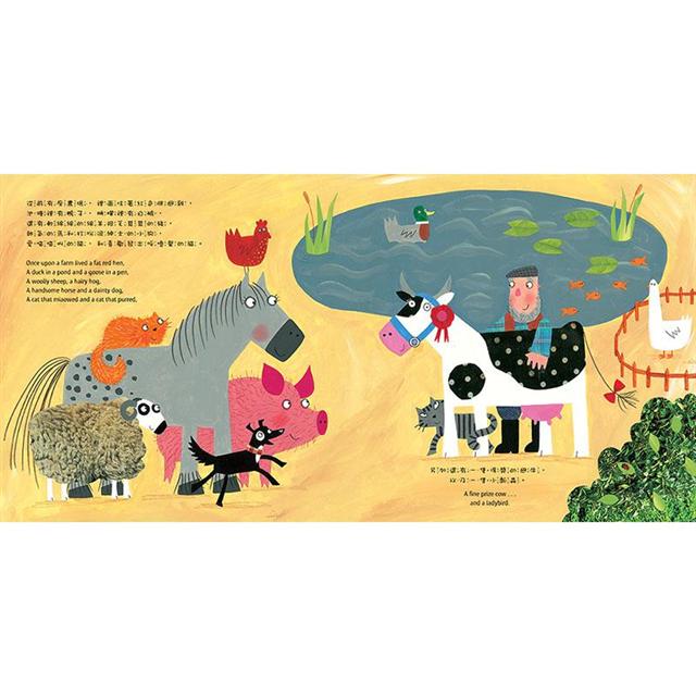 書中介紹近十種農場動物的叫聲,孩子可以享受大聲朗讀並模仿擬聲,趣味性十足。