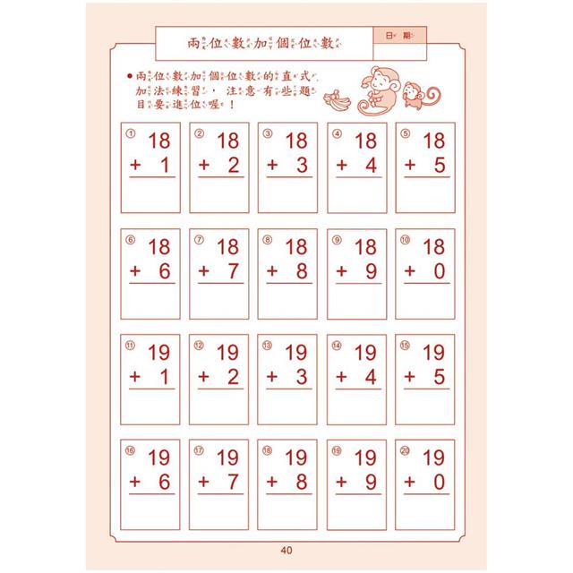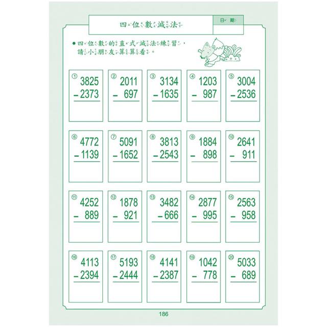 由個位數加減到四位數加減,從基礎題到進階題循序漸進練習。