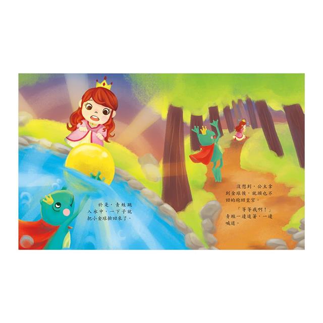 還好青蛙先生能幫忙,但是他要公主先答應三個願望:青蛙要跟公主一起吃飯,到公主的房間裡玩,還要公主給他一個親親!