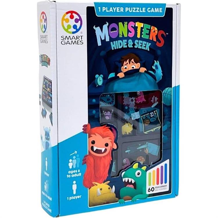 可愛的小怪物捉迷藏遊戲,讓孩子練習透過數算與推理來思考解題。透明盒蓋設計,方便收納與攜帶,居家或出遊時進行遊戲都合適。