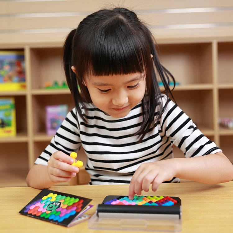 附透明盒蓋的遊戲盤,兼具收納及遊戲功能,方便攜帶,隨走隨玩。六角珠面設計,讓拼排或堆疊擺放時更加穩固;搭配平面與立體凹槽的雙面遊戲盤設計,三種遊戲模式讓挑戰更豐富多樣,從遊戲中提升專注力與解決問題能力、增進空間概念。