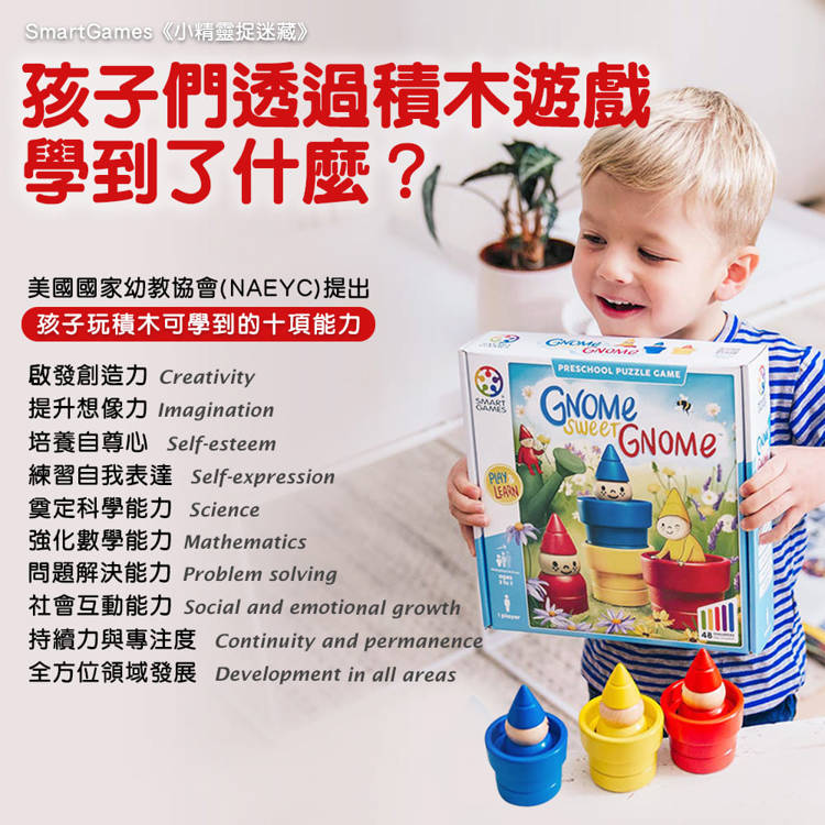 《小精靈捉迷藏》是令人感到溫暖開心的木製積木桌遊!孩子安心快樂的把玩不同高度的小精靈和不同深度的花盆,並搭配著題目本挑戰,可以幫助孩子建立解決問題和邏輯思考的能力,讓媽媽也一起玩得好開心!