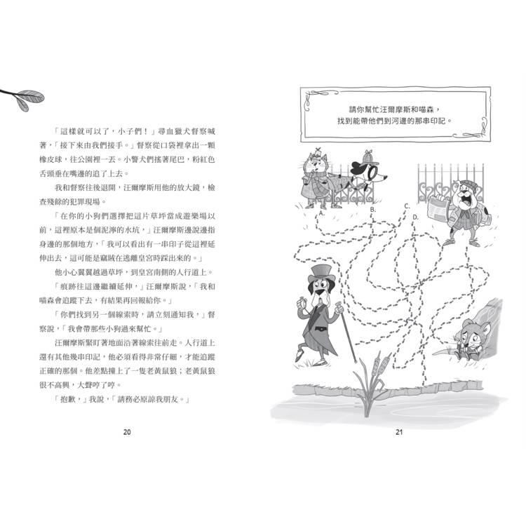 福爾摩斯最迷人的地方就是他透過觀察微小的細節,將破碎的線索組裝起來,推理出別人沒發現的真相,書裡這位汪爾摩斯完全抓到精隨(連傲驕感都沒有漏掉),小朋友讀起來一定會在心裡「哇~」的讚嘆不已,就跟我們小時候被福爾摩斯迷到無法動彈一樣。