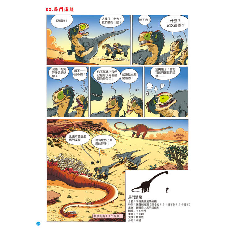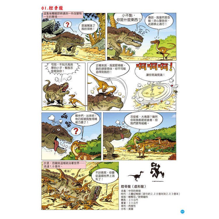 收錄恐龍命名、生存年代、體型與分布,邊看漫畫邊長知識!