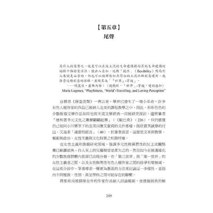 本書對文化多樣性議題進行了新穎而微妙的回應,理論開闊多元、研究視角新穎、文本分析細緻,具有鮮明的女性學者論述特色,是文學理論與批評、亞裔美國文學、女性研究、族裔研究等領域的必讀書目,亦適合對人文社會、歷史、民族等學科有興趣的讀者。