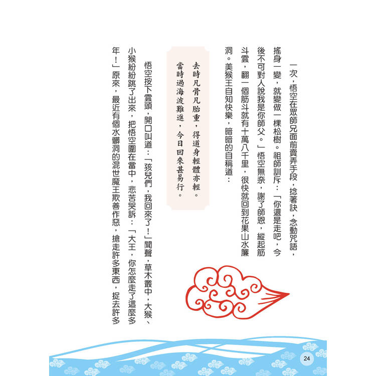 經典小說《西遊記》是中國明朝的作品,原著是以古代的白話文撰寫,時而加入畫龍點睛的一段詩詞。以唐玄奘至西域取經的真實歷史為主軸,再加入虛構人物與故事的成分,讓讀者隨著說書人進入神奇虛幻的世界,跟著孫悟空經歷了九九八十一關的打怪大冒險。