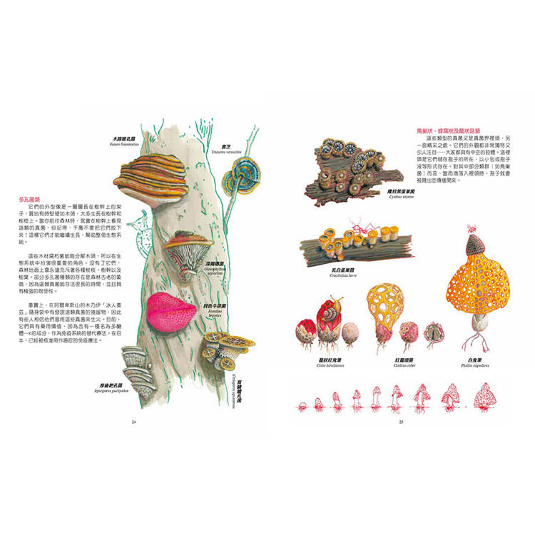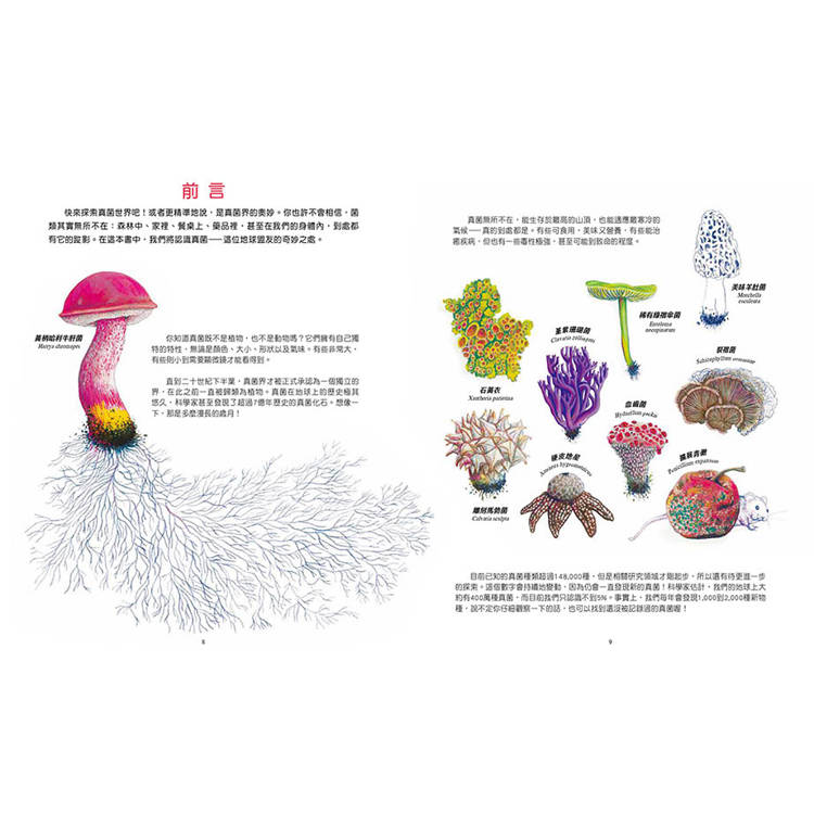 透過細緻優雅的擬真插圖與深入淺出介紹國內外稀有及常見真菌,啟發多維認知、連結科技與自然的視覺盛宴,一起愛上這個自成一界的絢爛世界!
