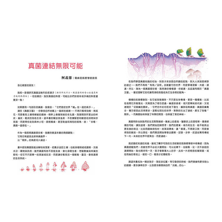 當你了解真菌間和其他生物間的互動關係,一定覺得驚奇又有趣,所以,跟著這本《真菌王國》,一起進入奇幻又令人著迷的真菌世界吧!