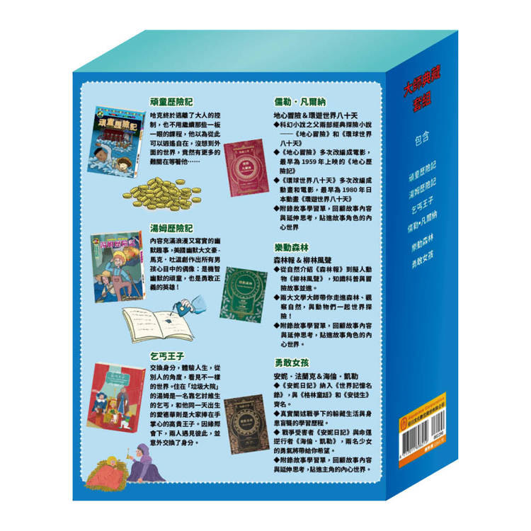 大師典藏 套組(乞丐王子∕湯姆歷險記∕頑童歷險記∕地心冒險&環遊世界八十天∕森林報&柳林風聲∕安妮日記&海倫.凱勒)