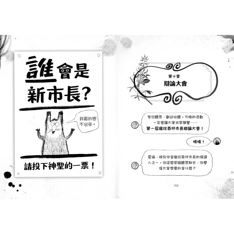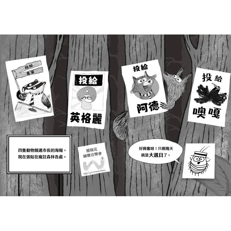 投票前幾天,剛搬來瘋狂森林的黃鼠狼史卑比,也以「實話實說黨」候選人身分加入選舉混戰,甚至放話只要投票給他,就能享用美味的餅乾,而且,他似乎偷偷動了一些手腳──被人惡意破壞的競選海報、被揭露的候選人醜聞、票數暴增的作票黑箱……這些骯髒的手段,很有可能就是他一手策畫的。