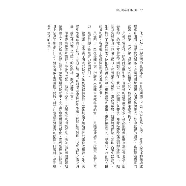 「克麗絲汀.佩林的精采續作,證明她實力堅強!能重返《自己的命案自己破》中的角色世界實在太棒了,尤其是聲名狼藉的占卜師再次拋出預言,引發一連串意想不到的殺機。《自己的命運自己寫》緊湊刺激,線索即便近在眼前,結局不到最後就是猜不到!」──《每天破一起謀殺案》國際暢銷作家 G.T. 卡柏