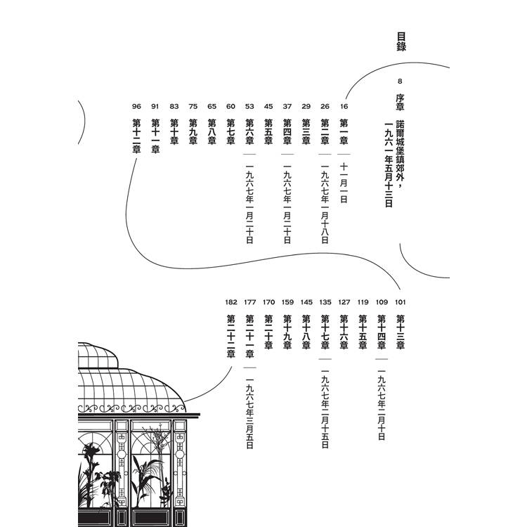 我的思緒又回到了那一棟房子,我又開始質疑自己留在這裡是否是正確的選擇。隨著秋天把冰冷的雙臂緊緊擁住了莊園,陽光投射在地板上的萬花筒圖樣越來越少,花園也從原本玫瑰盛開的地方,變成了一片荊棘叢生、陰影重重的角落。到了夜裡,當我意識到自己是這棟巨大房屋中唯一的住客,坐擁十七間臥室、一間圖書館、三間客廳、一個能舉辦正式餐宴的餐廳區域、一間日光室,以及如同倫敦公寓般大小的廚房時,我此刻唯一想要的,竟然是聽著媽媽播放她吵鬧的音樂,和一個便宜的起士三明治。