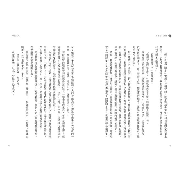 「《時空之城》是一本寫給青少年的書。然而,正如所有優秀的奇幻作品,它並不只屬於某個特定年齡層的讀者。奇幻文學才不管你幾歲呢。想像的力量是無窮的。無論我們設下多少壁壘、築起多少心牆,想像的世界總能輕而易舉地突破一切。許多還沒進入青春期的孩子肯定會喜歡這個故事,而那些早已度過青春歲月的大人,同樣會沉浸其中。這點,我敢打包票。 畢竟,我自己都已經是個老太太了,卻仍在這場雲霄飛車般的冒險旅程中興奮地尖叫著,享受每一刻。