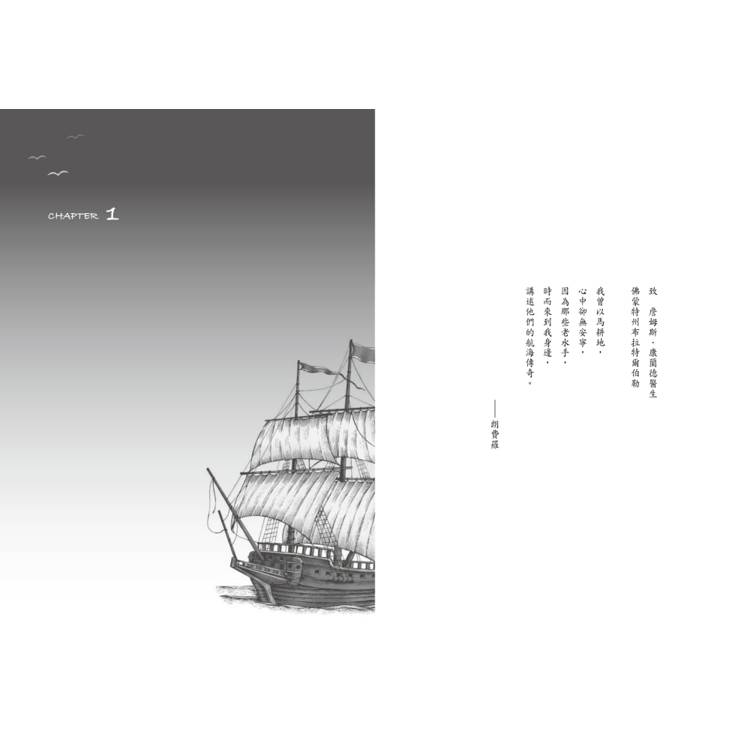 「誰抱歉了?先生們,這是我第一次橫渡大西洋,除了頭一天,我可一點都沒暈船。完全沒有,先生們!」他得意地握緊拳頭,在桌上砰地砸了一下,接著舔了舔手指,繼續數他的鈔票。