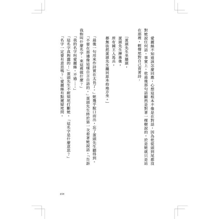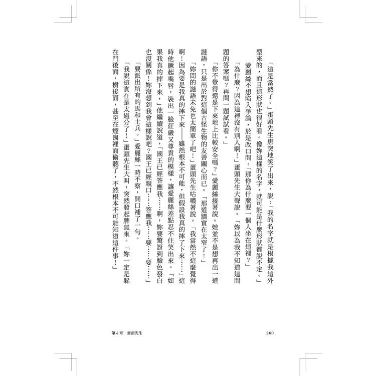 《愛麗絲夢遊仙境與鏡中奇緣》以幽默而荒誕的故事情節,打破真實與虛幻、合理與無理的界限。文本中蘊含語言、邏輯與社會文化等多重意義,不論兒童還是大人,都能在愛麗絲的奇境中尋得屬於自己的純真與反思。