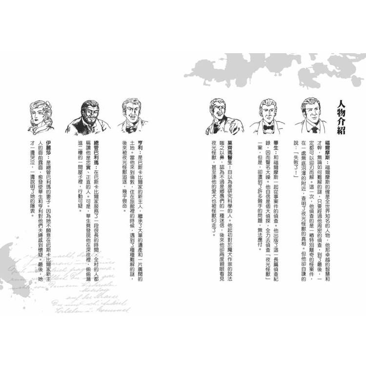 深夜裡,一隻閃爍青光、碩大如牛的怪獸,出現在無底泥沼一帶,專門撲殺巴斯卡比爾家的人。牠究竟是不是魔犬?到底世界上有沒有「魔人」這回事呢?福爾摩斯經過抽絲剝繭的推理,終於發現謀財的祕密。