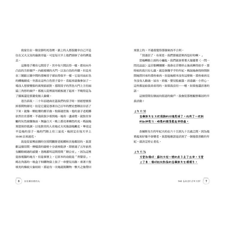 「《金魚男孩》不只是一部懸疑小說,也是一部探討恐懼與孤獨的作品。故事精彩,人物刻劃也溫暖又深刻。」──每日郵報(Daily Mail)