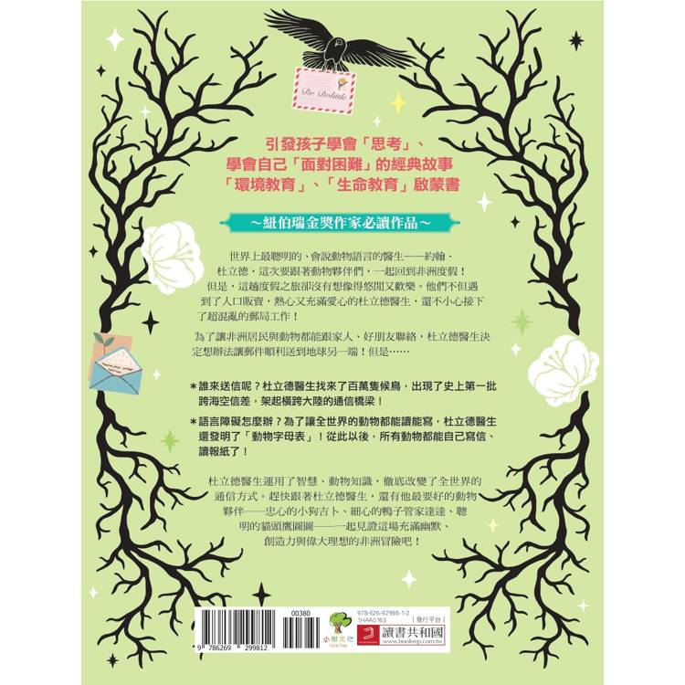 世界上最聰明的、會說動物語言的醫生──約翰.杜立德,這次要跟著動物夥伴們,一起回到非洲度假!但是,這趟度假之旅卻沒有想像得悠閒又歡樂。他們不但遇到了人口販賣,熱心又充滿愛心的杜立德醫生,還不小心接下了超混亂的郵局工作!