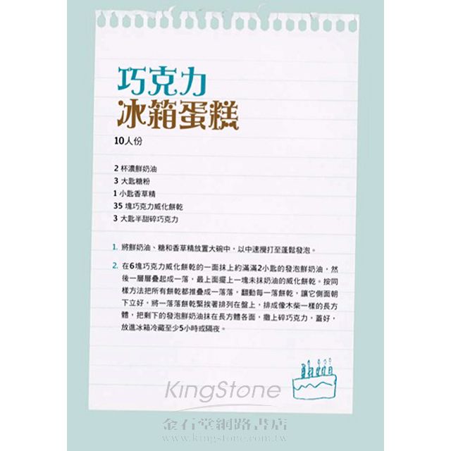 歡迎來到食譜俱樂部,這本書除了食譜, 還有女性成長和成熟必需的Girl’s Talk……在閱讀完別人的故事之後,我想,你可能會和我一樣,從書裡挑幾道食譜進廚房去,為自己。