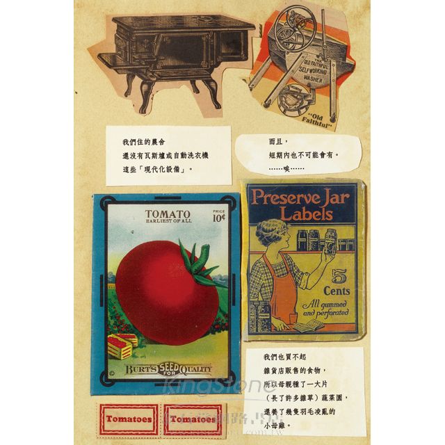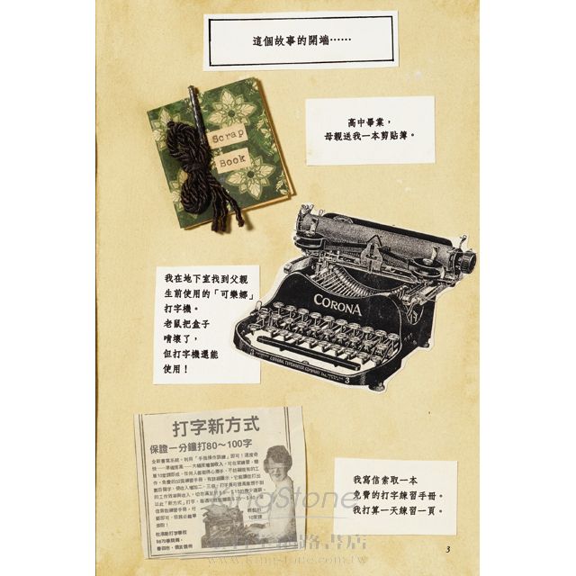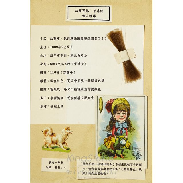 作者卡洛琳.普瑞斯頓從她中學時代便開始蒐集古董剪貼簿,她同時也是一位傑出的藝術家,更進駐美國維吉尼亞創意藝術中心Yaddo。這本小說從形形色色的古董明信片、信函、雜誌廣告、票券存根、目錄、紡織品布樣、糖果紙、時尚流行海報中拼貼,串出一道追尋真愛的旅程。