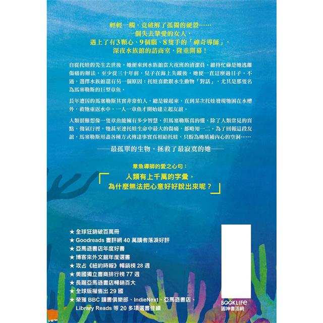 ▲ 本書驚人的地方是充滿了機智巧妙、迷人驚喜,以及擁有最令人喜愛的角色—章魚先生馬塞勒斯。這故事如此美好動人,我保證你一翻開就欲罷不能。──辛西亞.狄普莉絲.史威尼,暢銷小說《安樂窩》作者
