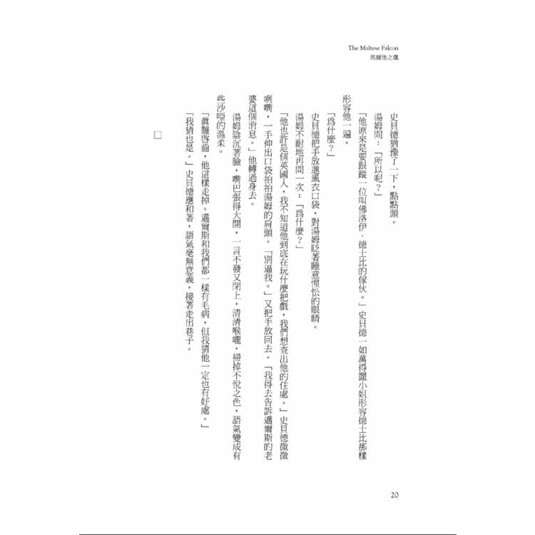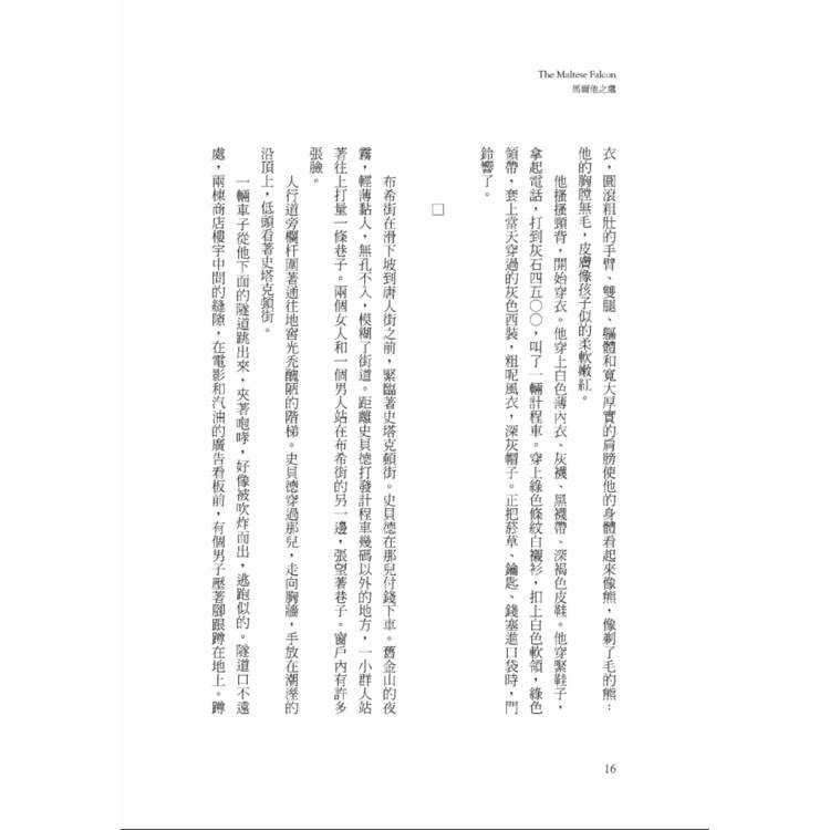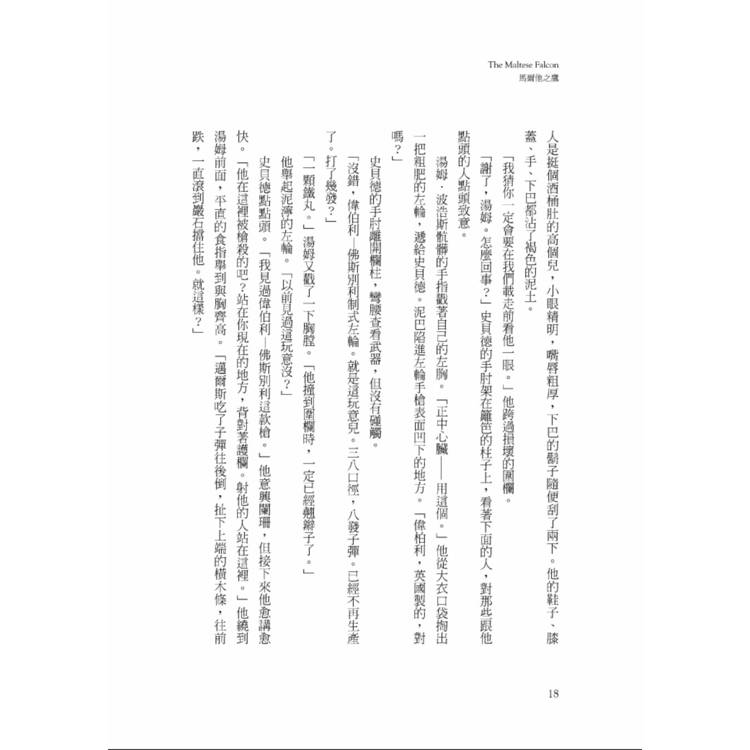 來自希臘和土耳其等地的匪徒與殺手紛紛現身,開出高額賞金利誘,只為了找回這尊傳說中的金鷹雕像。握有關鍵線索的歐香奈西和史貝德愈走愈近,逼得他不得不捲入這場歷時三百年、跋涉三千里的奪寶陰謀,但他們所追逐的這項珍寶,究竟是真品、偽物或是幻影?史貝德唯一在乎的,是找出誰冷血謀殺了他的合夥人,但唯有揭開馬爾他之鷹的真相,才能知曉凶手的身分……