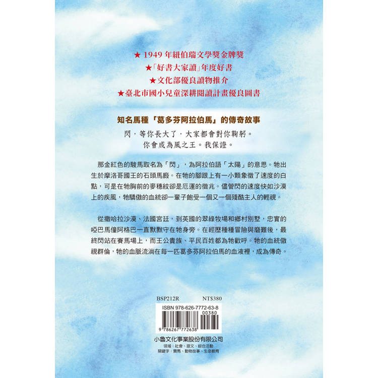 如果你想為孩子選一本將史實轉化為小說的優秀作品,我會推薦《風之王》,作者瑪格莉特.亨利以精準的考據與豐沛的情感,將「葛多芬阿拉伯」(純種馬的三大始祖之一的阿拉伯馬)的史實,轉化成撼動人心的文學經典。