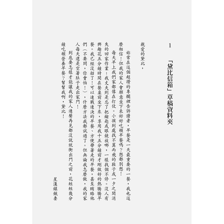 早上我不准跟我女兒莉西說話。 莉西剛上高中時訂了這規矩,現在她已經高四,還是一樣嚴格實施中。之所以會有這個規定,是因為莉西不喜歡我一早看到她劈頭就問:「妳好嗎?」而且她反正「現在就是不想說話好嗎,媽!」 所以高一才讀一半,莉西就正式宣布:早上下樓不准我跟她說話。要是我硬要跟她進行不管是口頭或非口頭的溝通,她就會凶巴巴嗆我一聲:「不是跟妳說過了嗎!」甚至更狠──直接用那種眼神瞪我。
