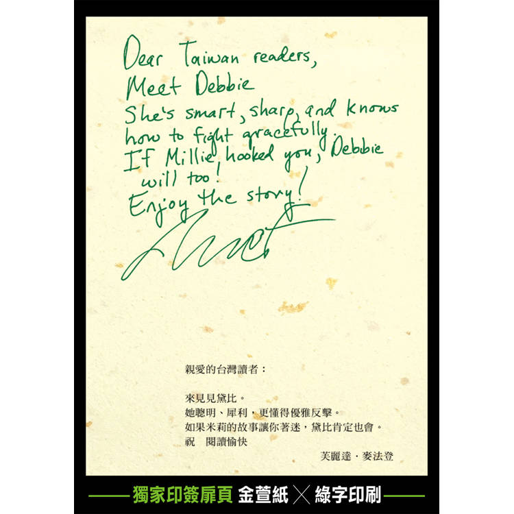 主角黛比寫給台灣讀者的信+作者印刷簽名(金萱紙 ╳ 綠字印刷)