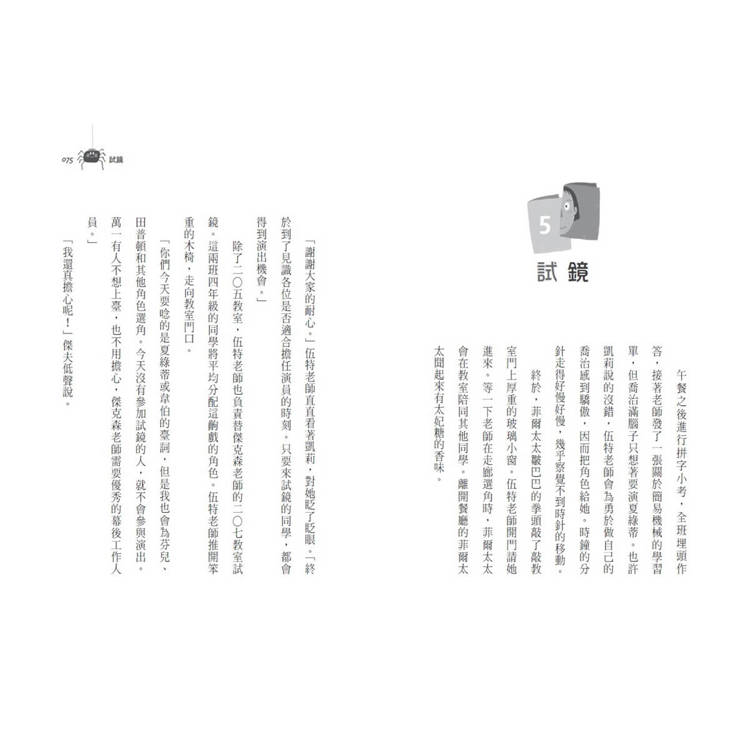 伍特老師靠著大書桌,對她的四年級學生朗讀手裡那本破損老舊的《夏綠蒂的網》。老師一頭黑亮的頭髮綁成一個鬆鬆的髮髻,木頭耳環在她耳垂下方晃呀晃。