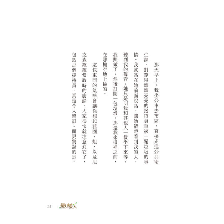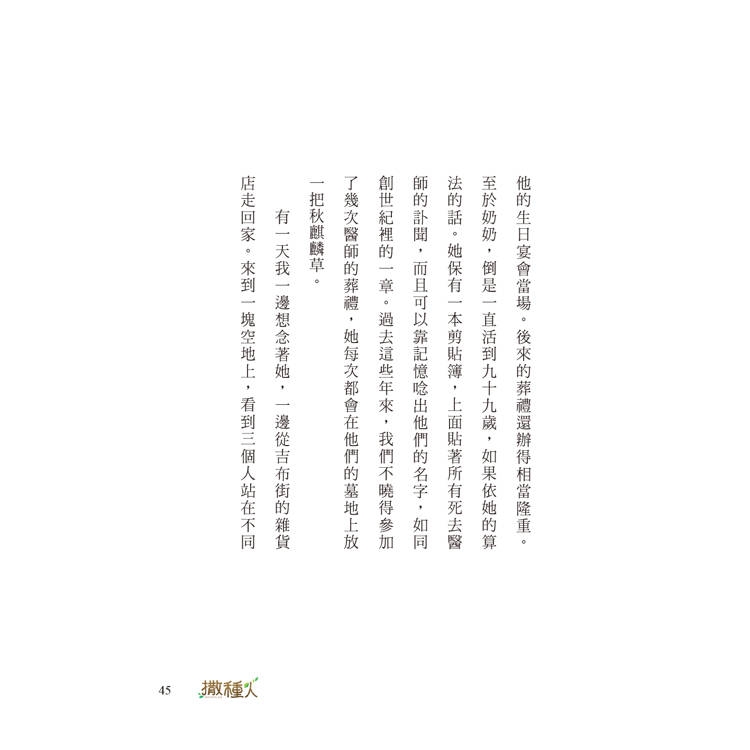 「撒種人」這個詞其實是我記得很久的詞彙,我想我應該是在閱讀某本書時突然認識這個詞。所以當時閱讀還特別記錄著,計劃要用在一本特別的書上——採訪記錄來自世界各地的第一批移民美國的人。