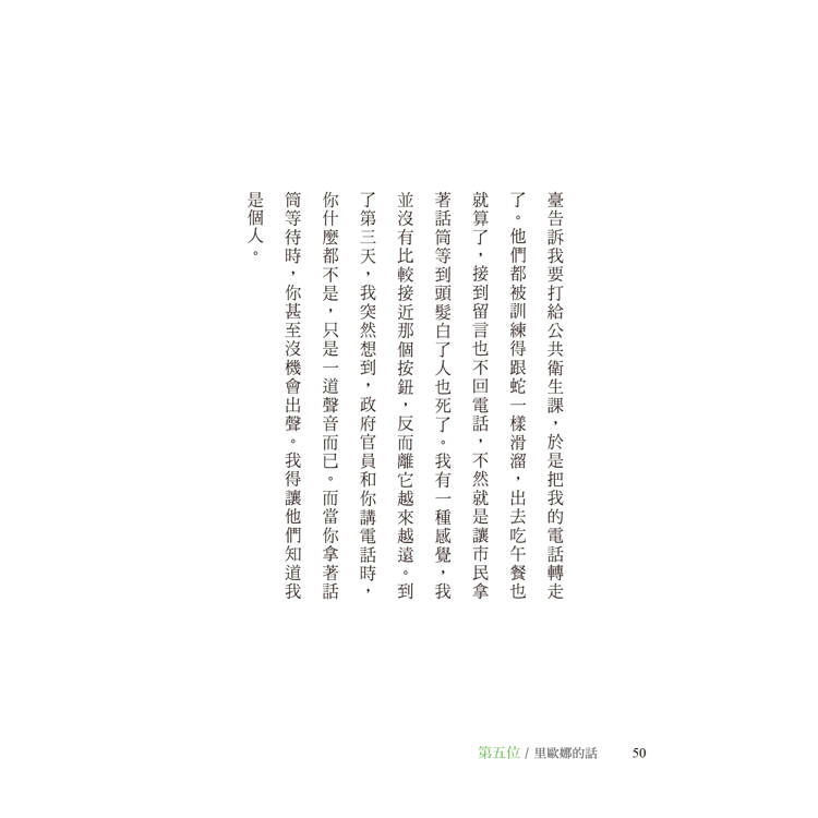我家的電話很少響,正合我意。兒子被槍殺死在街上時,警方就是用電話通知我的。還有去年內人發生車禍,我也是在電話中得知。所以一聽到電話鈴,我就會心悸。安娜打電話來時,我還在睡覺。被電話吵醒實在是很討厭。