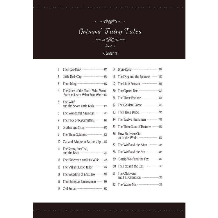 《格林童話》是世界上最知名、流傳最廣的童話故事集之一,由德國的格林兄弟──雅各布‧格林與威廉‧格林──在十九世紀初整理出版,總共收錄了兩百多則故事。這些故事最初源自德國各地的口述傳說與民間故事,帶有濃厚的地域特色與生活智慧。格林兄弟出於對民間文化的熱愛與保護,他們走訪農村、向家庭主婦、教師、朋友等人收集故事,力求將那些逐漸消失的傳說保存下來。