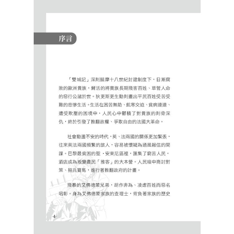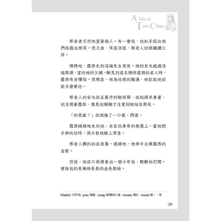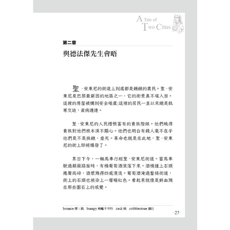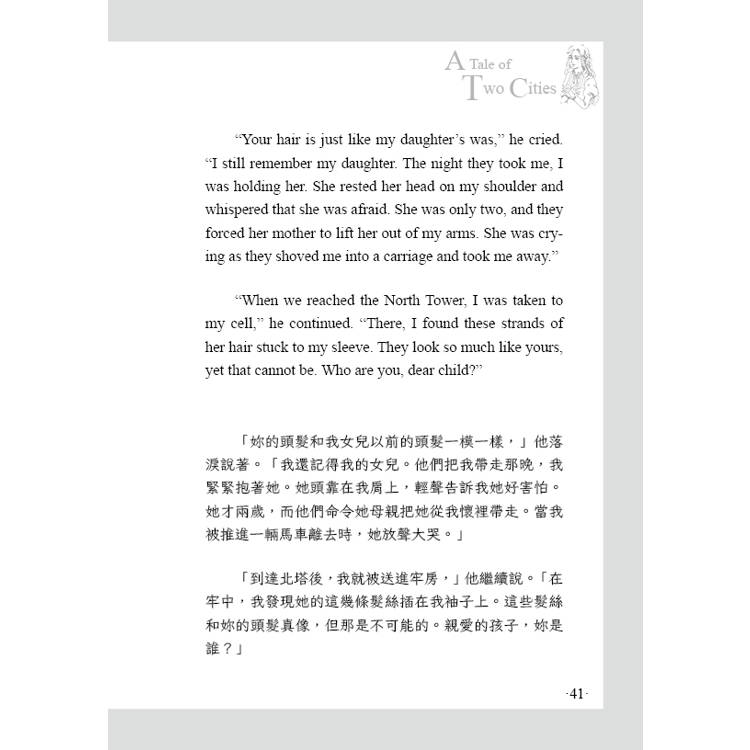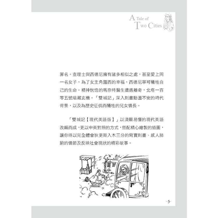 「雙城記【現代美語版】」以淺顯易懂的現代美語改編而成,更以中英對照的方式,搭配精心繪製的插圖,讓你得以完全體會狄更斯入木三分的寫實刻畫、感人肺